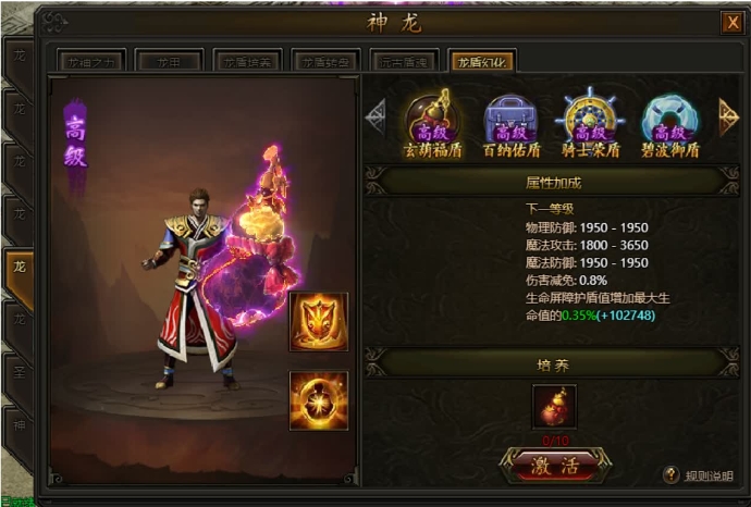 4、激活高级龙盾幻化可以激活以下生命屏障高级效果: